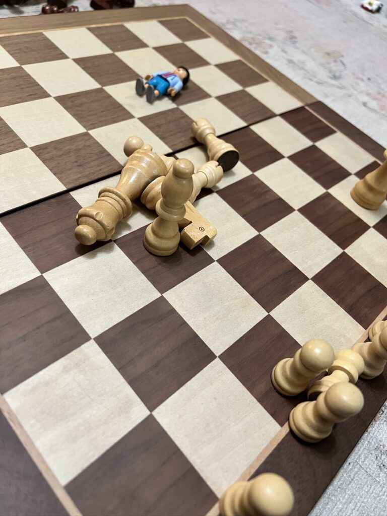 This only lasted until the end of the episode because it was back to building blocks, playing pretend battle, squishing some play-doh and fitting in a game of chess (his rules) with the kiddo.