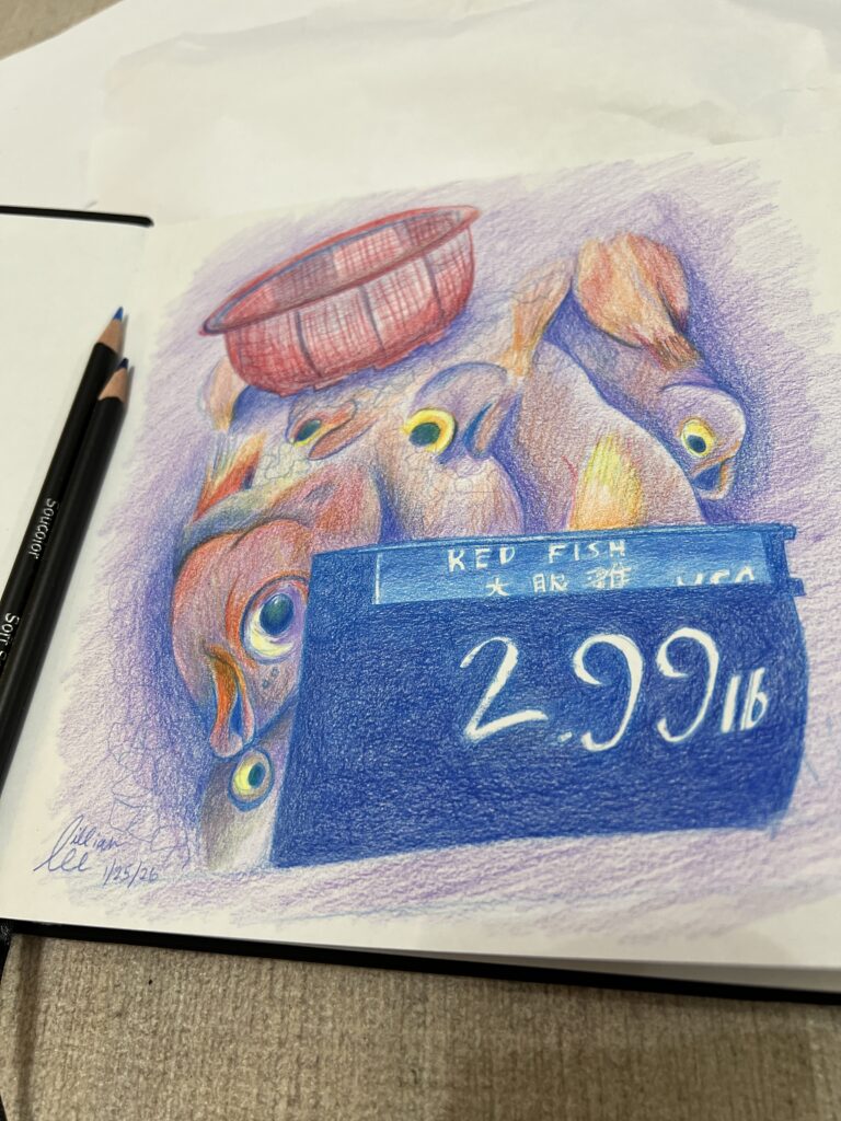 fish from the market in colored pencils
