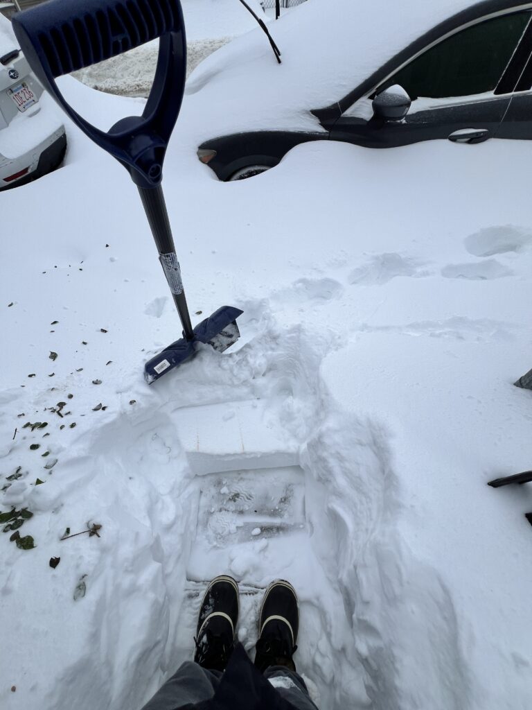 I played some Taylor Swift and just got to work. Bit by little bit, the sidewalk, car and back walkway were cleared. It took a couple hours and there’s a few more inches of snow on the way but the bulk of it is done. One bright side is that the snow wasn’t wet and heavy.